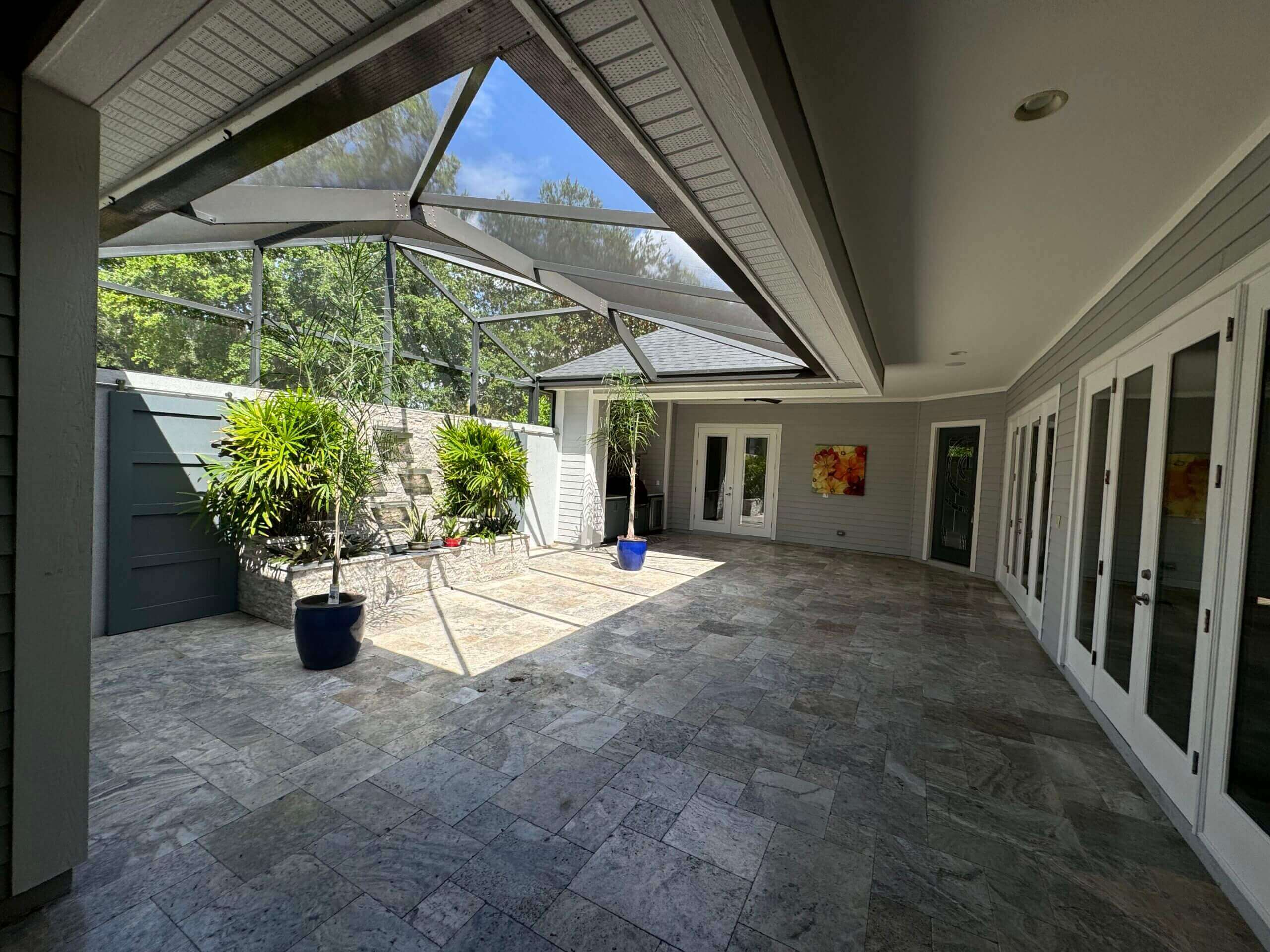 – Exterior features: Courtyard, French Doors, Irrigation System, Outdoor Grill, Outdoor Kitchen